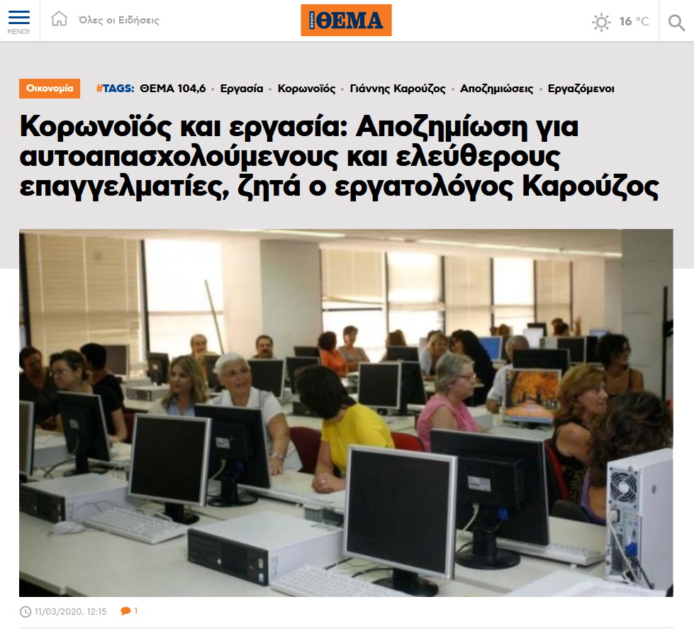 σχολιάζει τις εξελίξεις στα εργασιακά λόγω του κορωνοϊού.