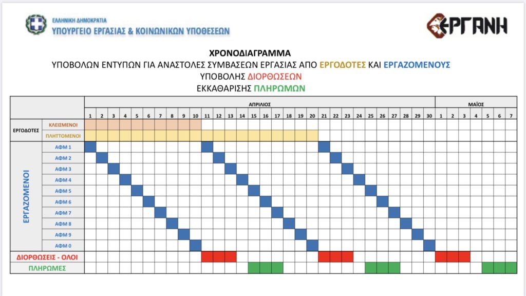 3. Οι εργαζόμενοι που θα υποβάλλουν δηλώσεις με βάση το τελευταίο ψηφίο του ΑΦΜ μεταξύ 21 και 30 Απριλίου θα μπορούν να κάνουν διορθώσεις 1-3 Μαίου και θα πληρωθούν 5-7 Μαίου.