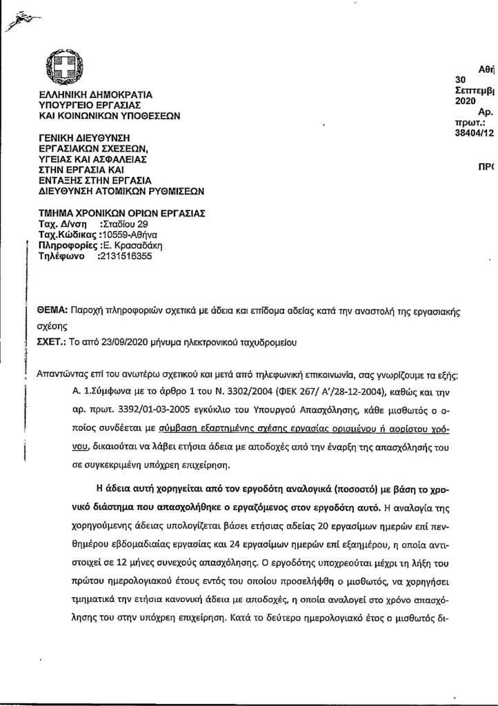 Επικαιρότητα ΕΠΙΔΟΜΑ ΑΔΕΙΑΣ ΚΑΤΑ ΤΗΝ ΑΝΑΣΤΟΛΗ ΕΡΓΑΣΙΑΚΗΣ ΣΧΕΣΗΣ By dikionsc - December 30, 2020 0 91 FacebookTwitterWhatsAppViber Σημαντικό έγγραφο του Υπουργείου Εργασίας για το επίδομα άδειας στους εποχικούς υπαλλήλους. Διαβάστε το έγγραφο που ακολουθεί: