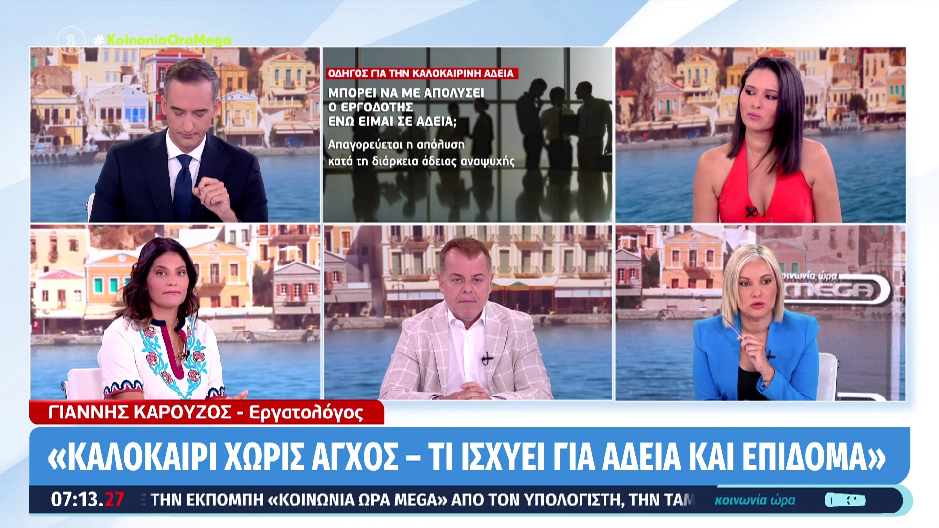 Ο εργατολόγος Γιάννης Καρούζος καλεσμένος στη πρωινή ενημερωτική εκπομπή του MEGA, για την άδεια αναψυχής.