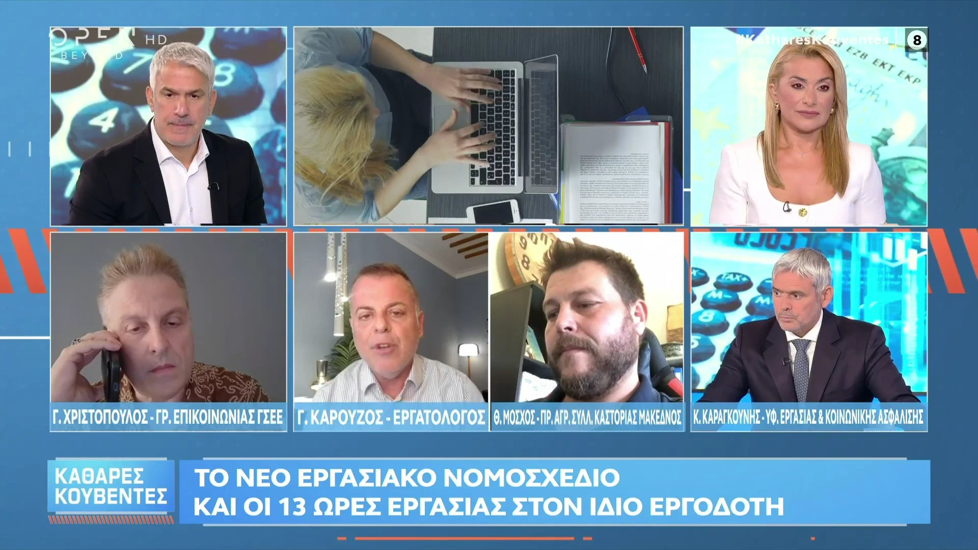 Ο εργατολόγος Γιάννης Καρούζος καλεσμένος στο OPEN σε μια χρήσιμη συζήτηση για το νέο εργασιακό με τον Υφυπουργό Εργασίας Κώστα Καραγκούνη και τον Γιώργο Χριστόπουλο Γραμματέα Επικοινωνίας της ΓΣΕΕ.