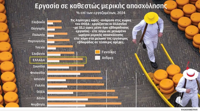 Ολα άρχισαν με τις γυναίκες. Η Ολλανδία διέθετε παραδοσιακό ανδροκρατούμενο εργασιακό μοντέλο, έως ότου οι γυναίκες εισήλθαν μαζικά στην αγορά εργασίας σε θέσεις μερικής απασχόλησης τις δεκαετίες του 1980, 1990 και 2000, δημιουργώντας την κατηγορία των νοικοκυριών με «ενάμιση μισθό». Η φορολογική νομοθεσία, από τη μεριά της, ευνόησε τα νοικοκυριά αυτά. Με το πέρασμα του χρόνου, καθώς τα εργασιακά αυτά μοντέλα έγιναν αποδεκτά, η μερική απασχόληση έγινε περισσότερο δημοφιλής και μεταξύ των ανδρών, ιδίως όταν αυτοί έχουν μικρά παιδιά.