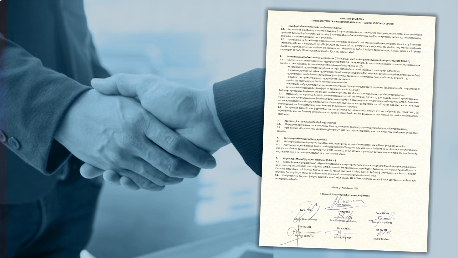 Υπεγράφη η Κοινωνική Συμφωνία για την Ενίσχυση των Συλλογικών Συμβάσεων Εργασίας μεταξύ της Κυβέρνησης και Εθνικών Κοινωνικών Εταίρων.